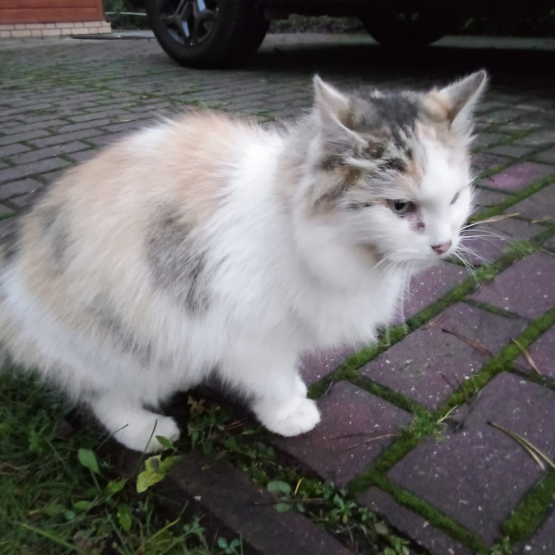 Добрый вечер! 30 октября была в деревне. Отвезла корм. НИ рассказала, что в деревне появилась новая кошечка. Я была когда уже НИ всех покормила, увидеть не удалось. А сегодня вот НИ прислала её фото, фотограф она еще тот. Но для общего обозрения понять можно. Соседи все отказываются, говорят, что не их кошка.