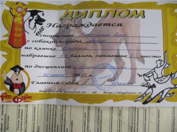 Если кто то помнит метиса бриара Тошика (теперь Коперник), то вот что про него пишут: за участие в конкурсе по кинологическому фристайлу