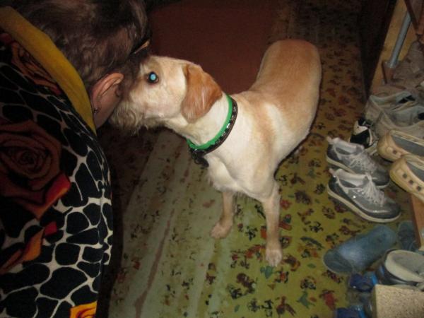 Да он не только повзрослел - он прямо таки стал - дамский угодник (на фотке целуется с соседкой) К женщинам относится лояльно - а вот с мужчинами старается не общаться. Мальчик на улице активный, прыгает барьер, любит подниматься по лестнице. А ещё любитель изваляться в дерьме - и ведь знает, что попадет. Нв улице не лает, а дома, если кто придет - хвост поднимает - такоооой бас, можно подумать - злая собака. Но на этом его миссия заканчивается - он убегает и прячется, дескать, хозяйка, дальше уж без меня. Да Анюта - смотрю на его фотки в приюте - такой испуганный обреченный взгляд. И с ужасом думаю, что бы с ним было, если бы я его не забрала. А ведь тоже хотели маленькую собачку.