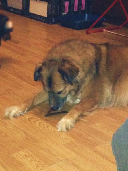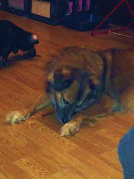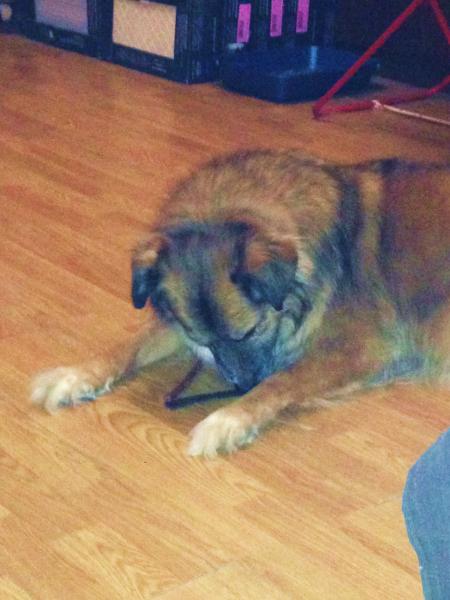 В остальном, все хорошо. Вообще, Буззех очень странный собакин. То, вроде все ничего, а то происходит регресс. Конечно, он любит и встречает хозяев. Чувствует, когда кто-то из своих идет за минут 5. Начинает пикать. Встречает, виляя хвостом, но тут же уходит на свое место.