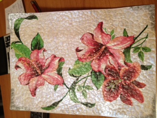 пробовала декупаж на яичной скорлупе. смотрится симпатично, но очень утомительная процедура