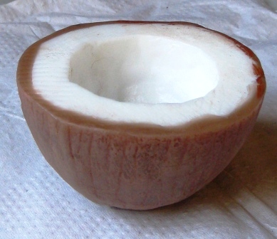 еще вот сделала мыльный кокос (форму сама сотворила из настоящего кокоса, муж этот кокос ругался, но пилил