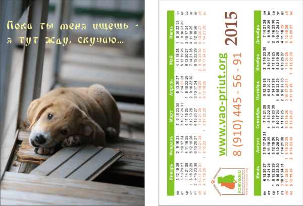 Поскольку практически все присланные мне фото собак пойдут на кураторские календари, я сделала из фото щенка, присланного Катей (спасибо!), общий макет. Получилась почти социальная реклама