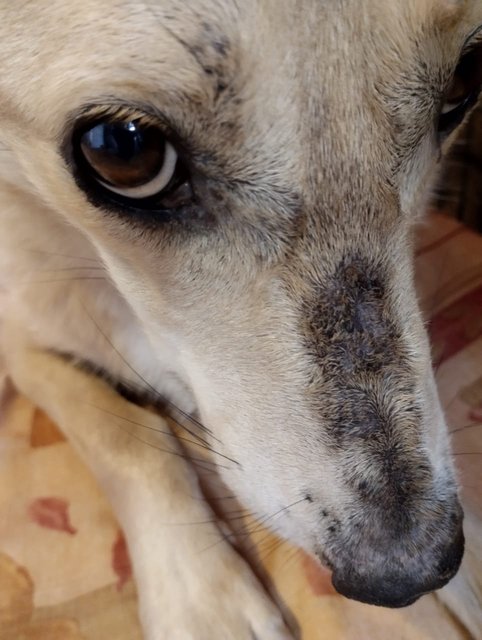 Кимчи в связи с выпадением шерсти на носу увеличили дозу преднизолона до 4т в день и сменили мазь тоже на Кловейт