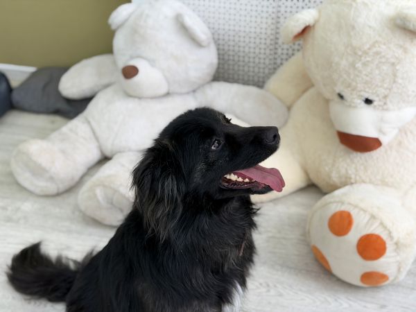 Джесси игрива, она может с удовольствием поиграть, погулять, и еще она любит угощаться. Что стало для нас большим подспорьем в наведении дружеских мостов. Пока у нее в друзьях 2 кинолога сектора и 2 волонтера, меньше чем пальцев на одной руке, но мы будем стараться, чтобы у нее было больше друзей.