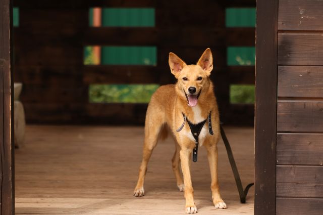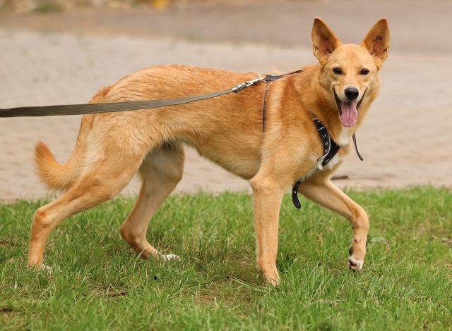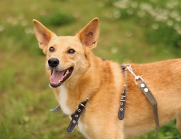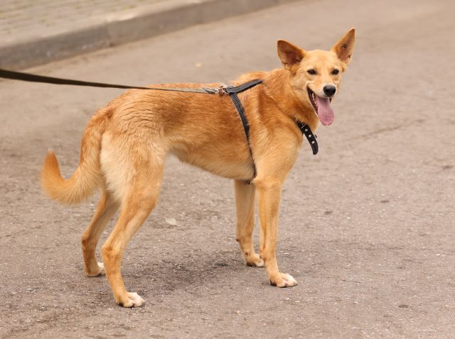 Отлично гуляет на поводке и слышит человека, ориентируется на него.
