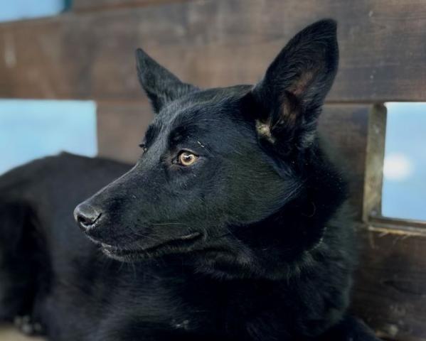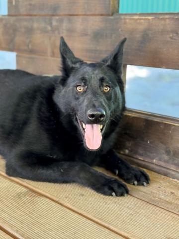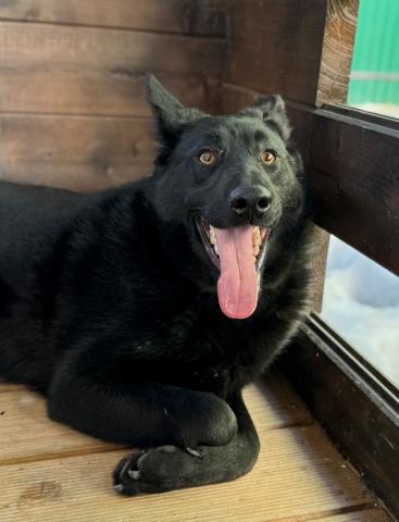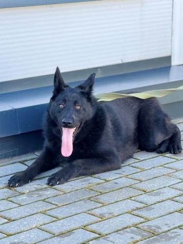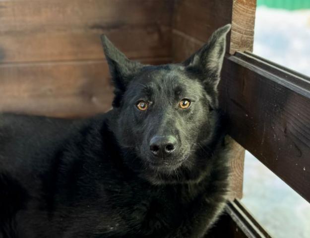 У Хавьера красивая черная шерсть переливается на солнце, она такая густая и плотная, что кажется будто его предок из каких-то пород черных овчарок. И острые уши и выразительные янтарные глаза, полные мудрости, не как у годовалого подростка. Он вырастет мощным и крупным.