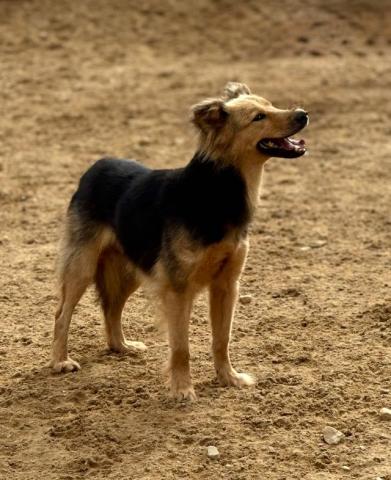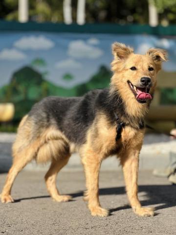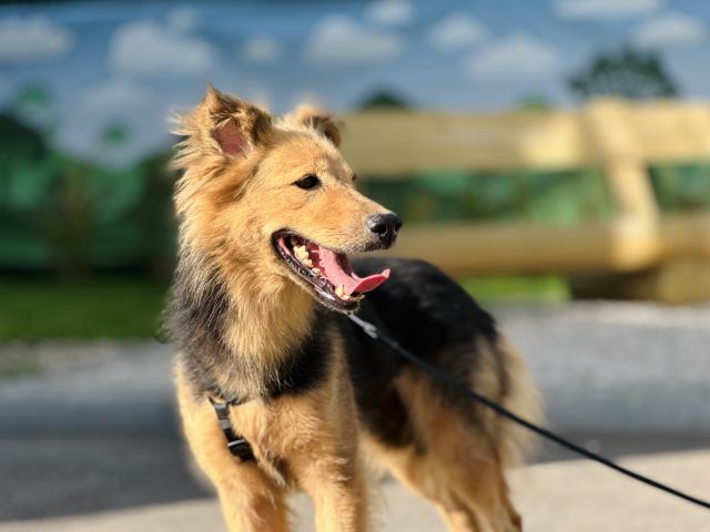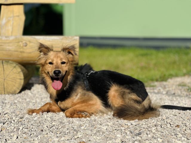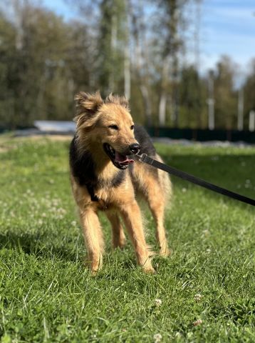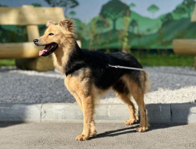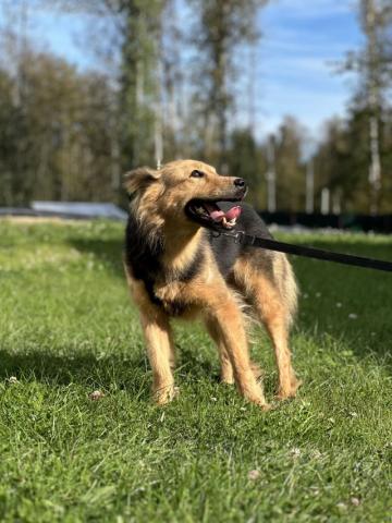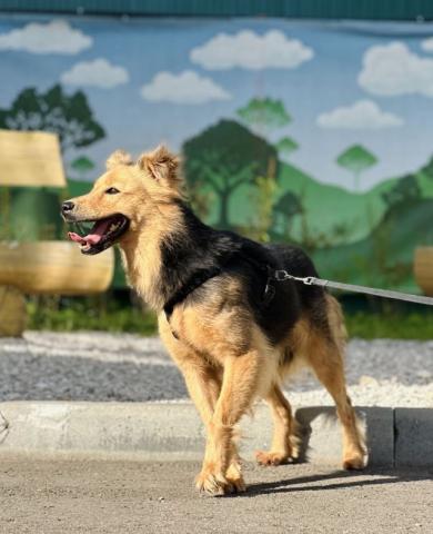 Селин молоденькая. Попала в приют в 2025 году, и кажется, что с людьми она была знакома.