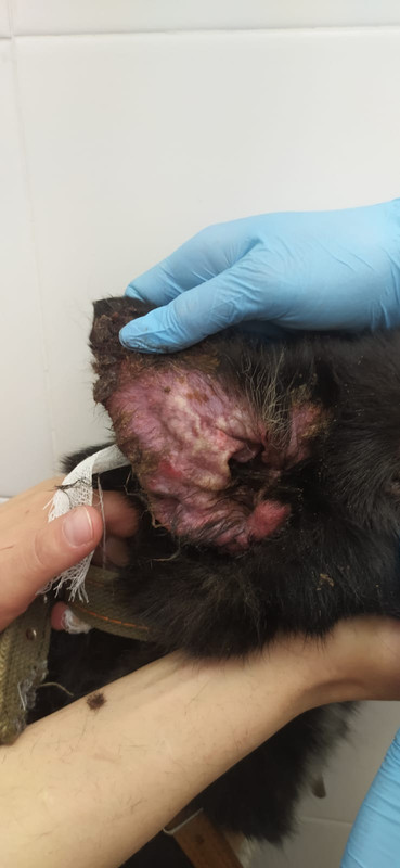Быстро и агрессивно стали появляться все новые поражения кожи, разрастаться по мордочке, и мы решили не медлить!