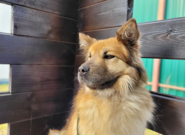 Шензи пока до сих не спешит общаться с людьми, она предпочитает созерцание, как на выгуле, так и рядом с человеком.